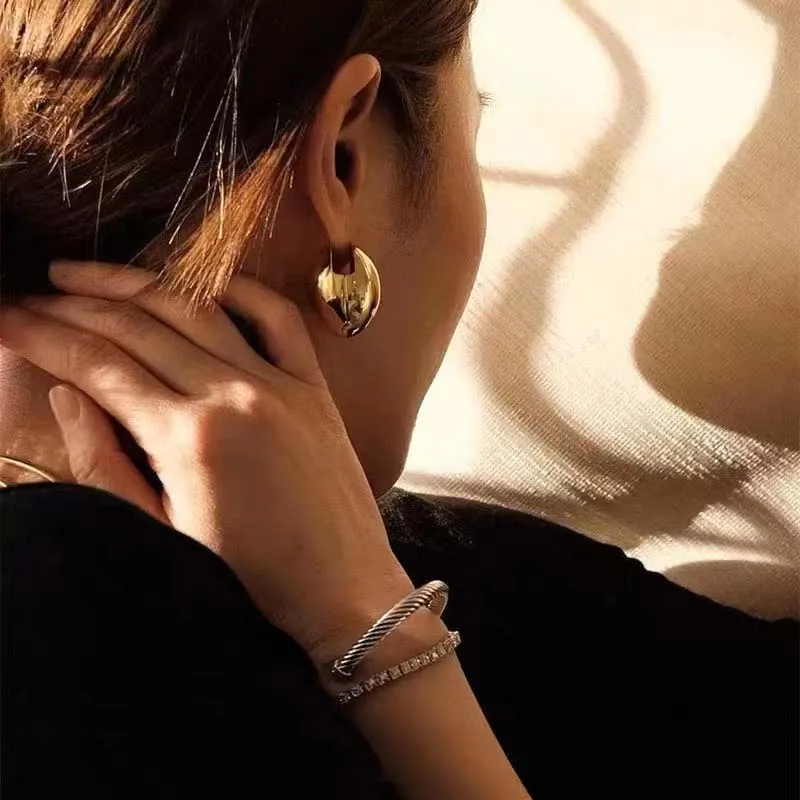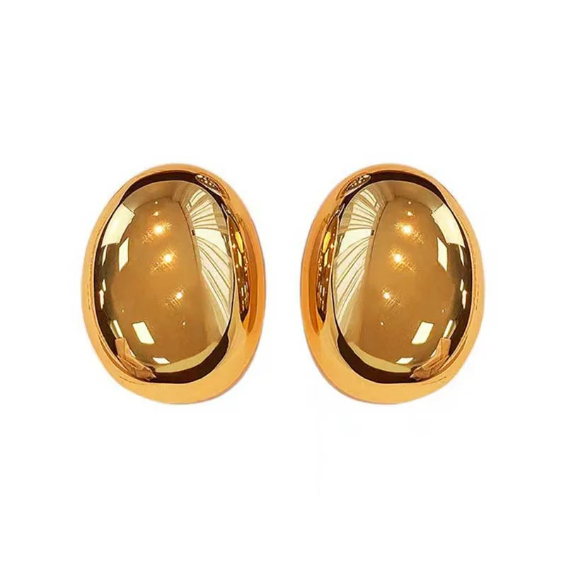 Fashion Metal Smooth Big Oval Stud Earrings for Women Exaggerated Hollow Ball Geometric Ear Buckle Earring Jewelry Gift 2023 New