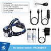 Option D:1x sensor LED Headlight + 2x 18650 Batteries + 1 x Micro USB charging cable + 1 x USB charging cable connector (We will match the correct charger specifications for you) + Gift Box + 1 x free gift (compass)